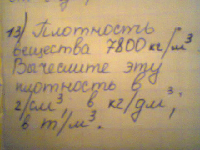 13) 7800кг/м^3=7,8 г/см^3=7800000 кг/дм^3=7,8 т/м^3