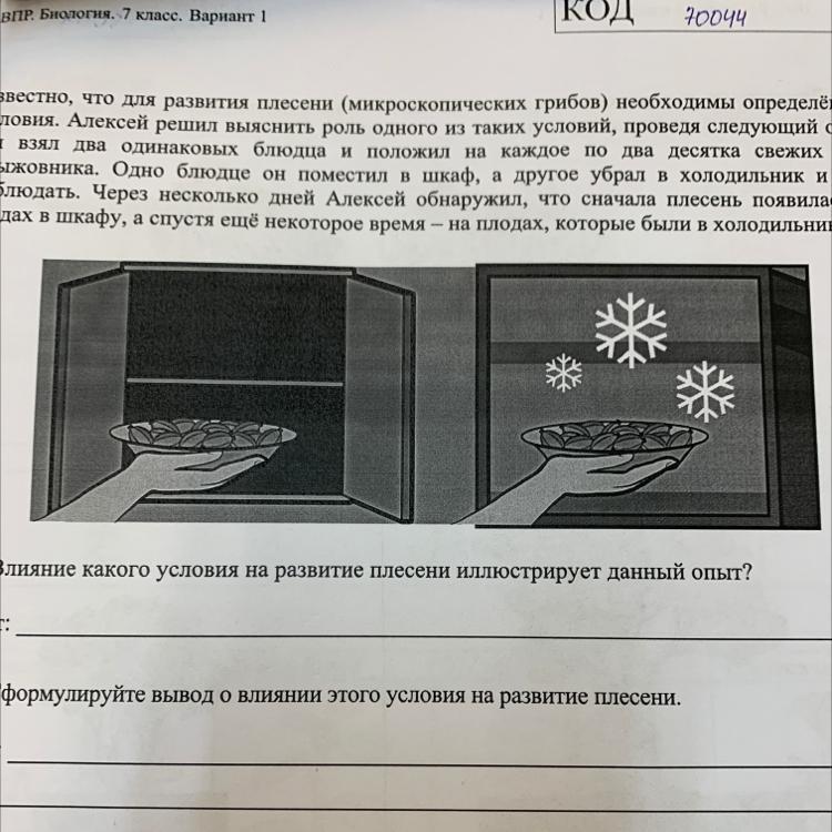 8.1. Влияние какого условия на развитие плесени иллюстрирует данный опыт