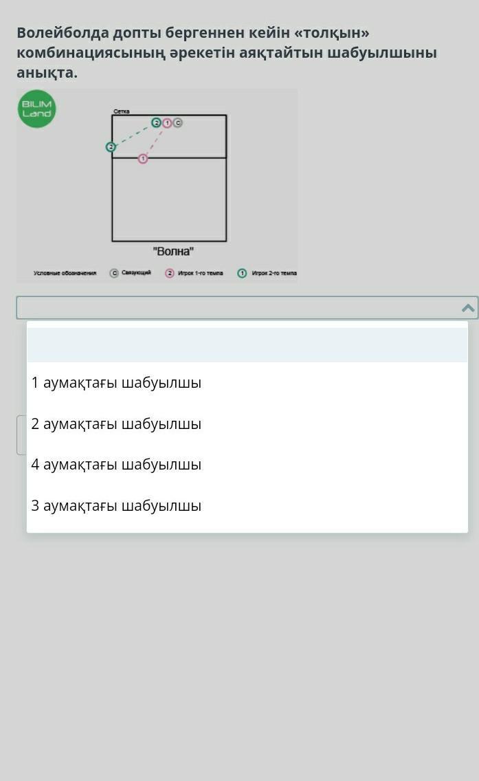Волейболда допты бергеннен кейін «толқын» комбинациясы онлайын