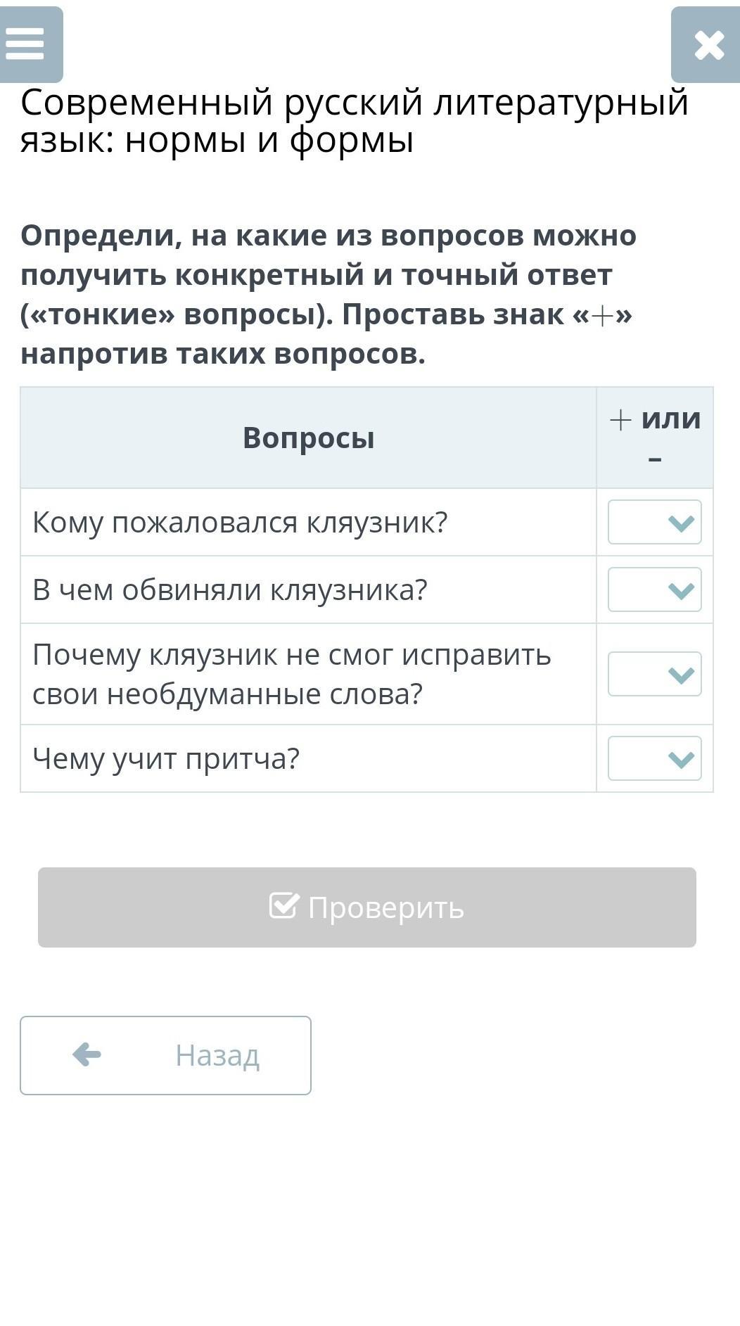 Опредили на какие из вопросов можно получить конкретные и точные ответы (тонкие вопросы) поставь знак +напротив таких вопросов