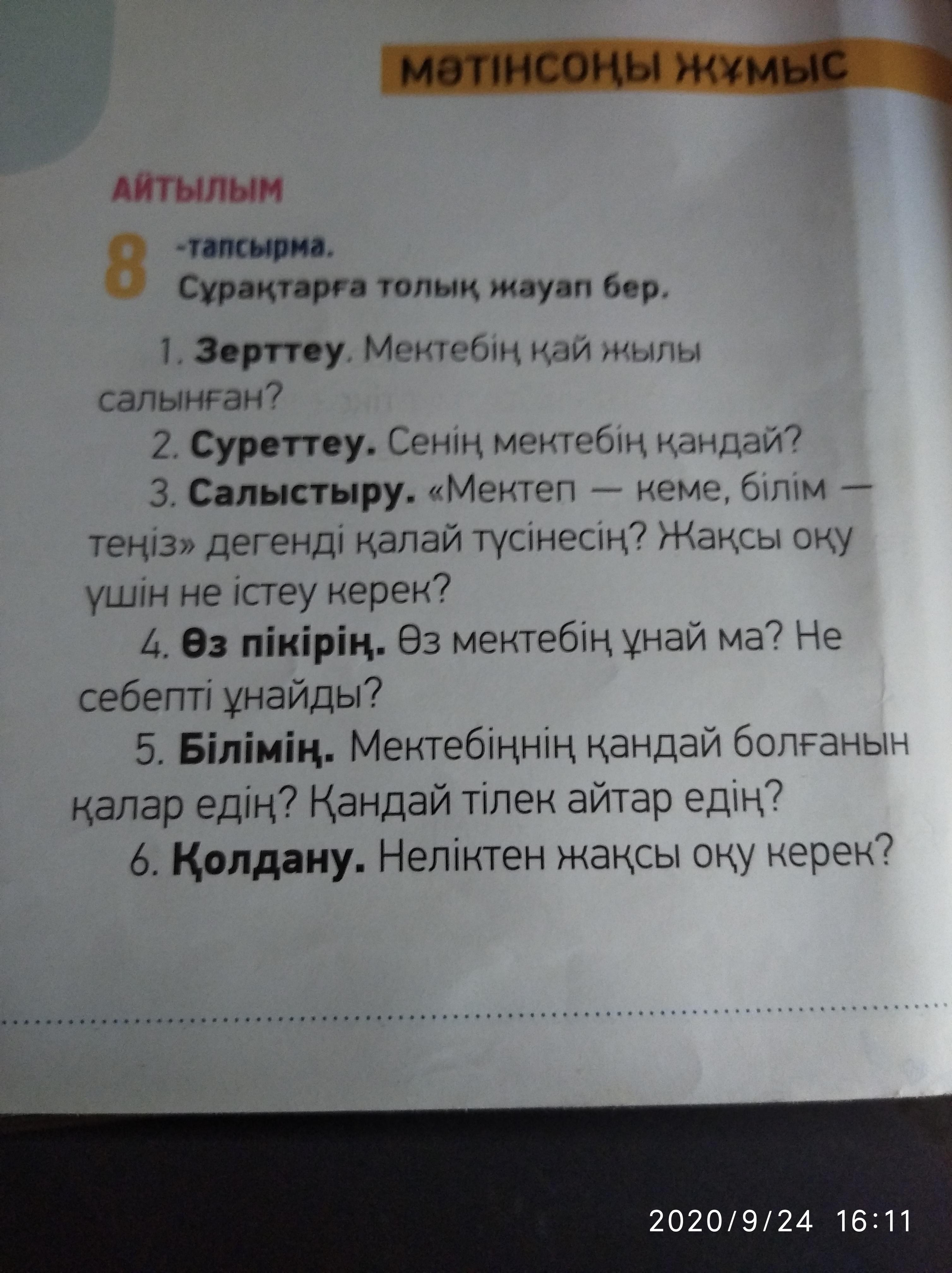 Бул жерде сенин мектебин жайлы сурап тур мектебинди сиппатап сурактарга жауап бересин