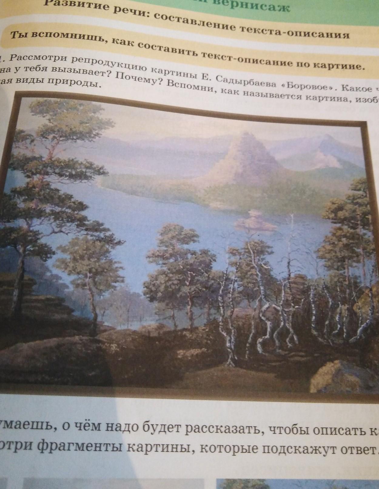 1. Рассмотри репродукцию картины Е. Садырбаева «Боровое». Какое чувство