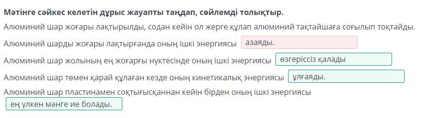 Мәтінге сәйкес келетін дұрыс жауапты таңдап, сөйлемді толықтыр.