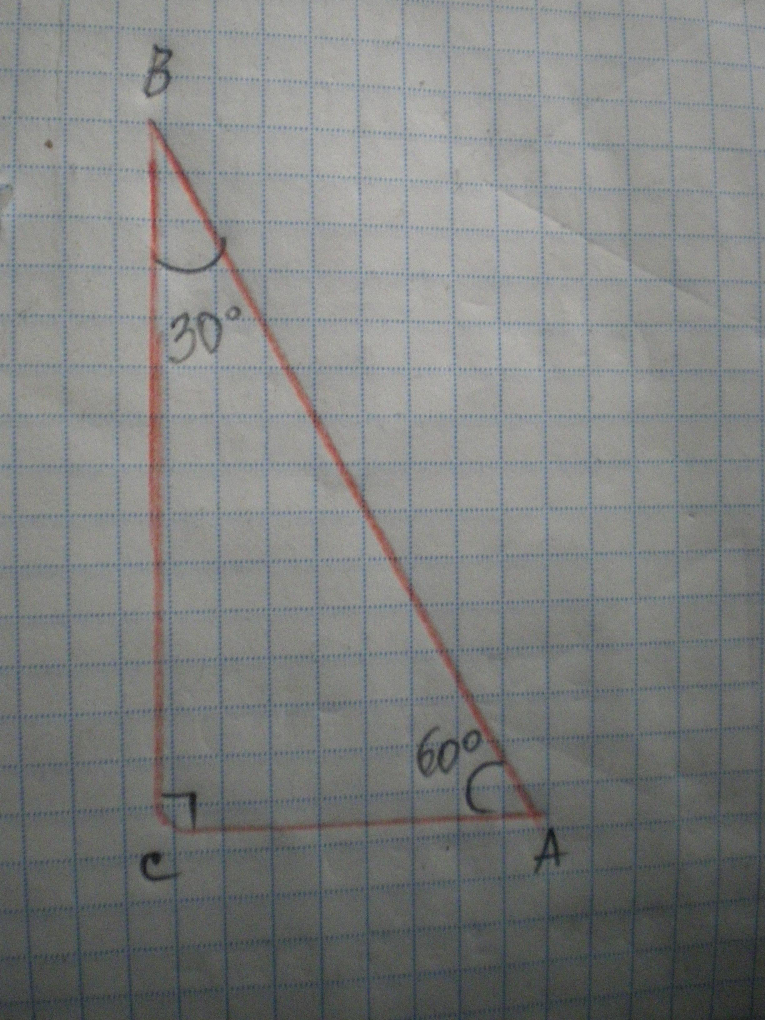 ∠В=90-60=30° по свойству суммы острых углов прямоугольного треугольника