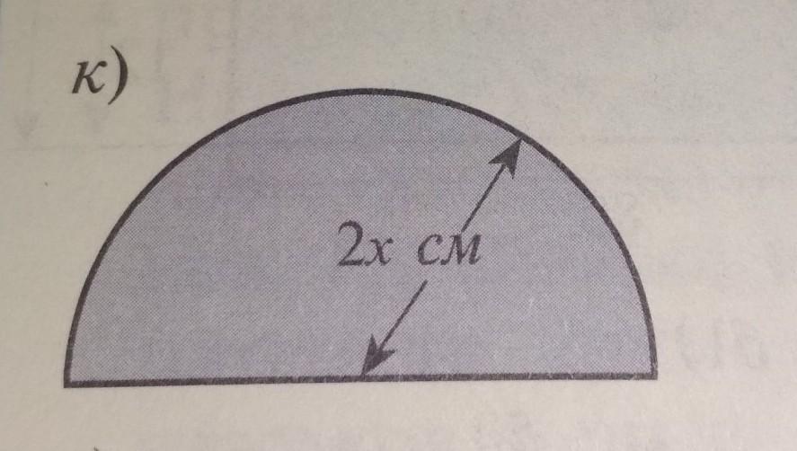 площадь круга = пи р квадрат следовательно (2х)в квадрате п= 4х в квадрате пи,но так как это полукруг то делим на 2 тогда ответ= 2х в квадрате пи
