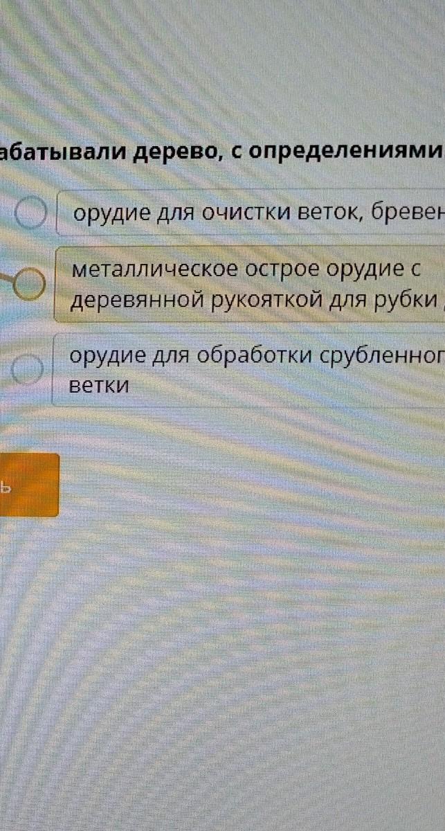 Соотнеси названия орудий ботайцев, которыми они обрабатывали дерево, с определения.. Топор, кетмень рубанок