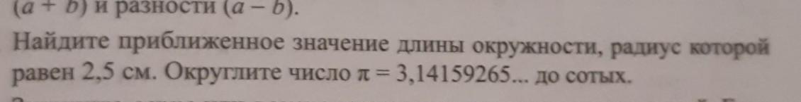Найдите приближённое значение длины окружности радиус которой равен 2,5 см округлите число