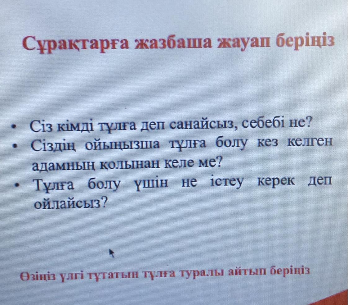 •Тұлғалы болалатын болсаң, ақылды, зейнепті, ақыл-ойға жүйрік, сымбаттылығынан қатар ақындылығы да бар адам болсаң, онда әрине бола аласың.