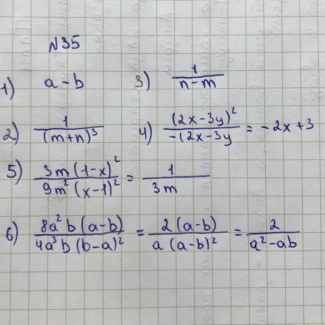 Сделайте пж срочно Номер 35 !!!нужно сократить дробь (использовать формулу квадрат суммы и квадрат разности)дам 20балов!!если правильно