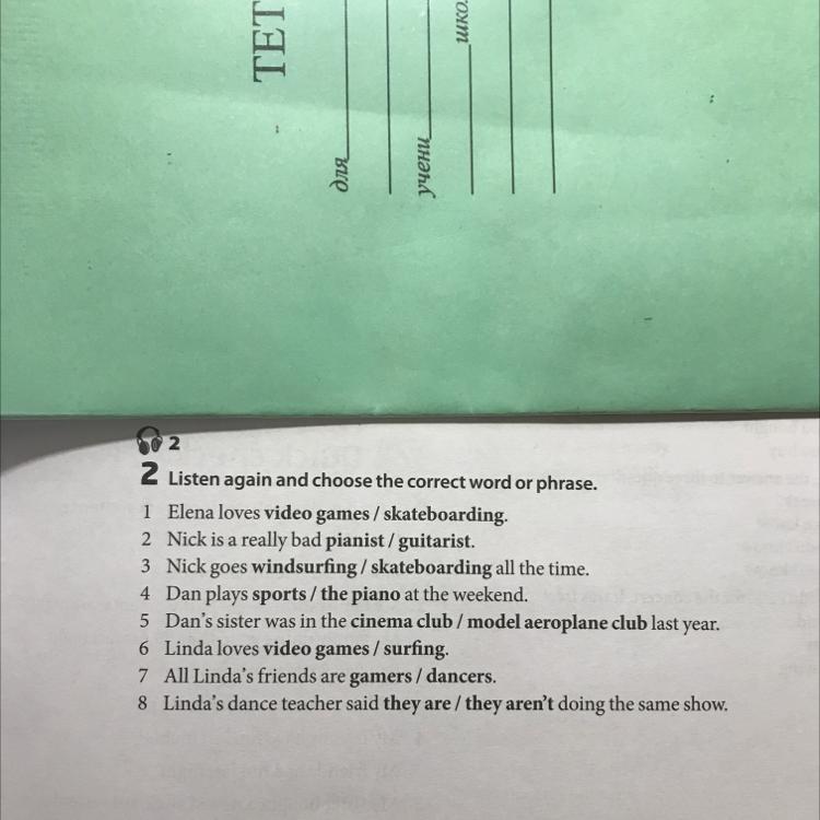 тебе надо было слушать аудирование и выбирать ответы. у нас аудио записи нет