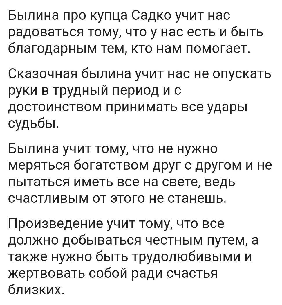 Отзыв о былине ,,Садко’’ 10-15 предложений не меньше. ( НЕ ПЕРЕСКАЗ БЫЛИНЫ,нужен ОТЗЫВ, например: ,,чем понравился’’ , ,,чему учит?’’ и тд...)