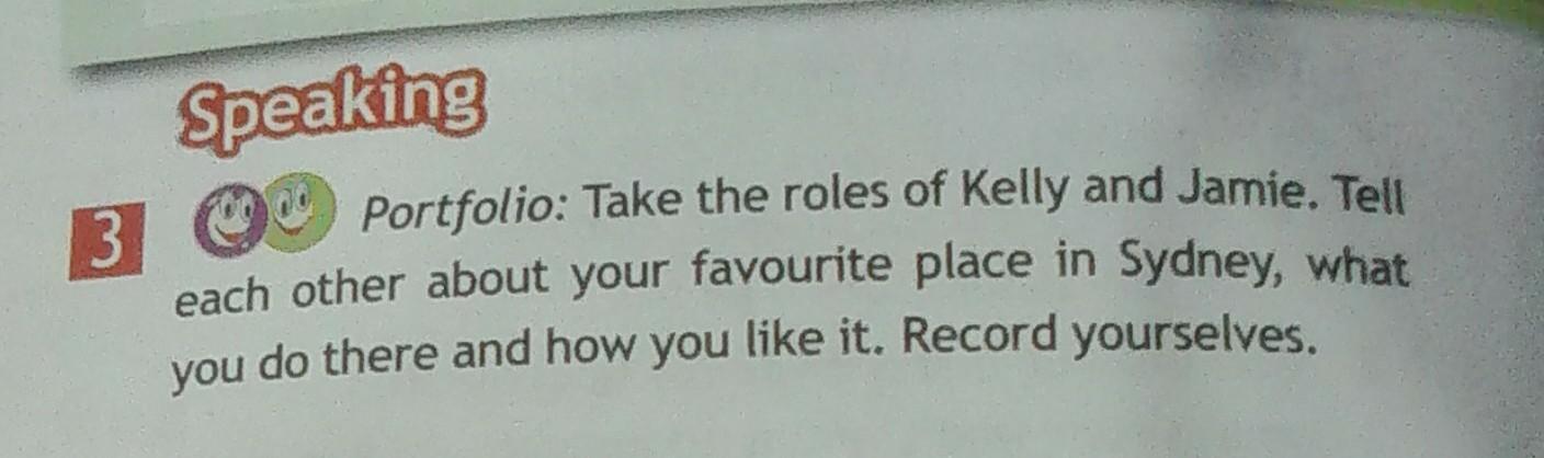 Портфолио: возьмите на себя роли Келли и Джейми, расскажите друг другу о своем любимом месте в Сиднее, чем вы там занимаетесь и как вам это нравится. Запишите себя.