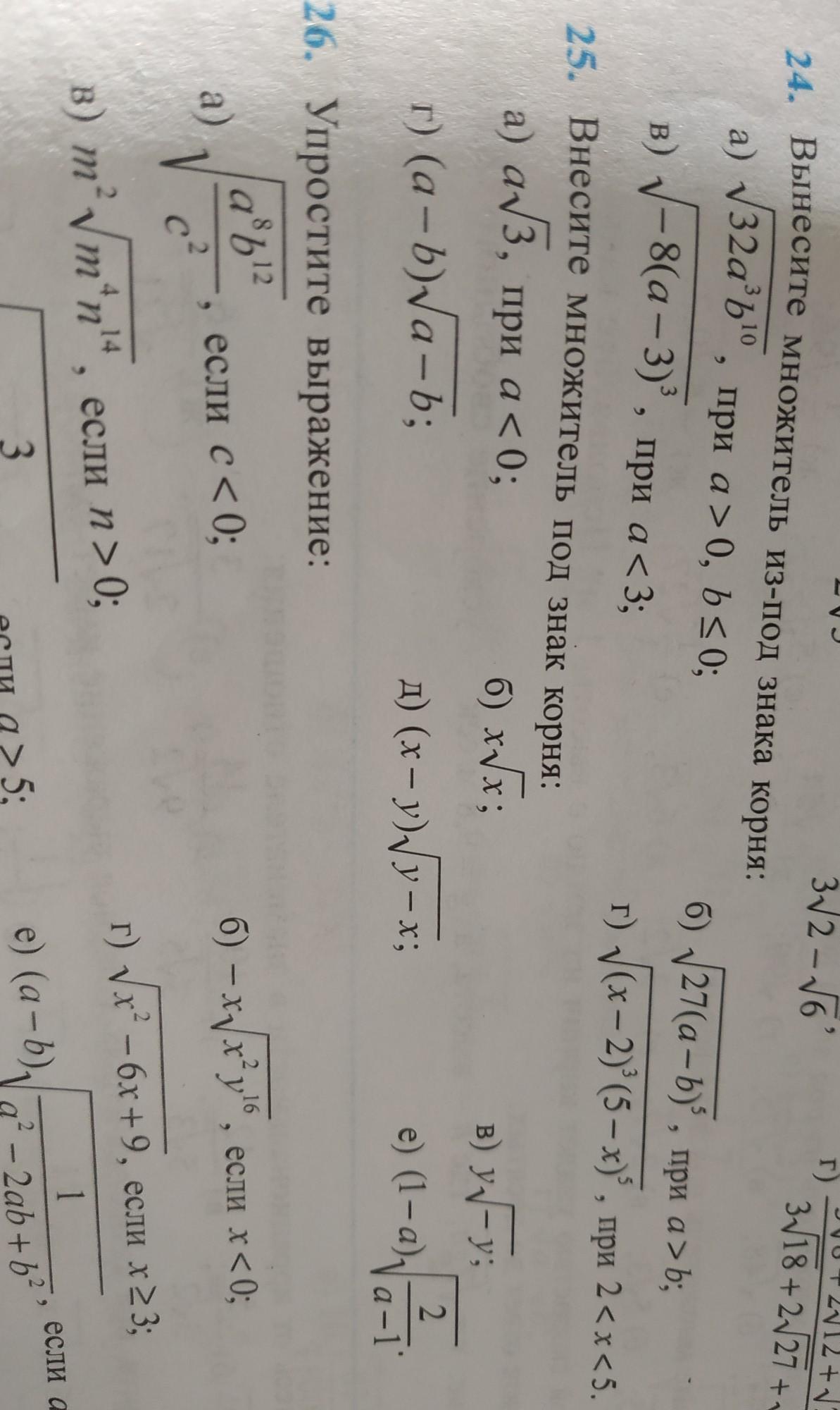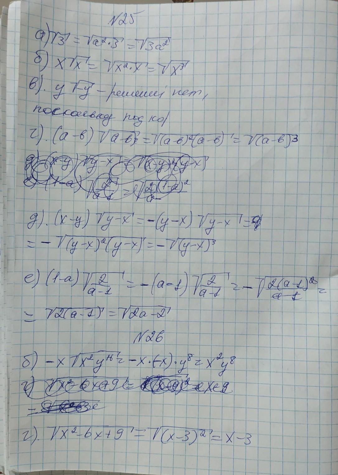 ответ на фото. В задании 25 (в) выражение недействительно, поскольку под квадратным корнем не может быть отрицательного значения выражения