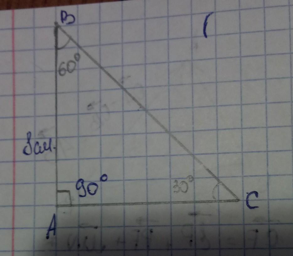 BC=8×2 (из «Катет,лежащий против угла в 30 градусов, равен половине гипотенузы»)