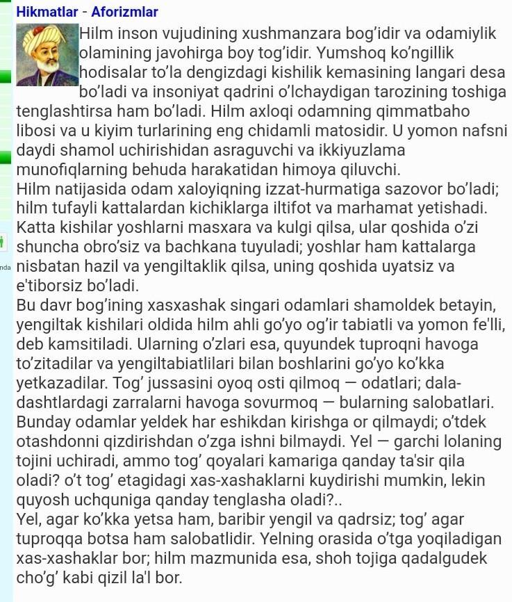 Navoiy ogitlariga amal qilaman mavzusida matn tuzing va unda sifatlardan foydalaning.Ilmoos yordam bervorila