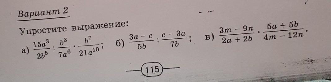 в) (3m-9n)/(2a+2b) * (5a+5b)/(4m-12n)=15/8.