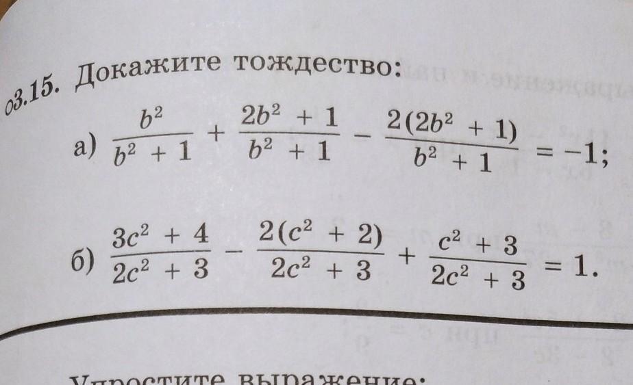 б) 3с²+4/2с²+3 - 2с²+4/2с²+3 + с²+3/2с²+3 = 1