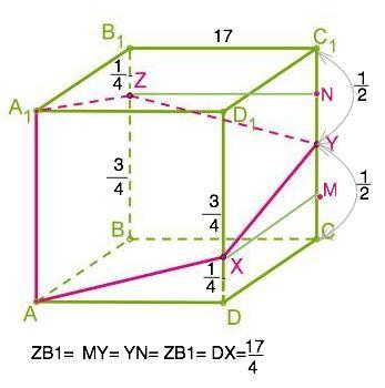 XD=ZB1=17•1/4, MY=YN=17•0,5•1/2=17•1/4.
