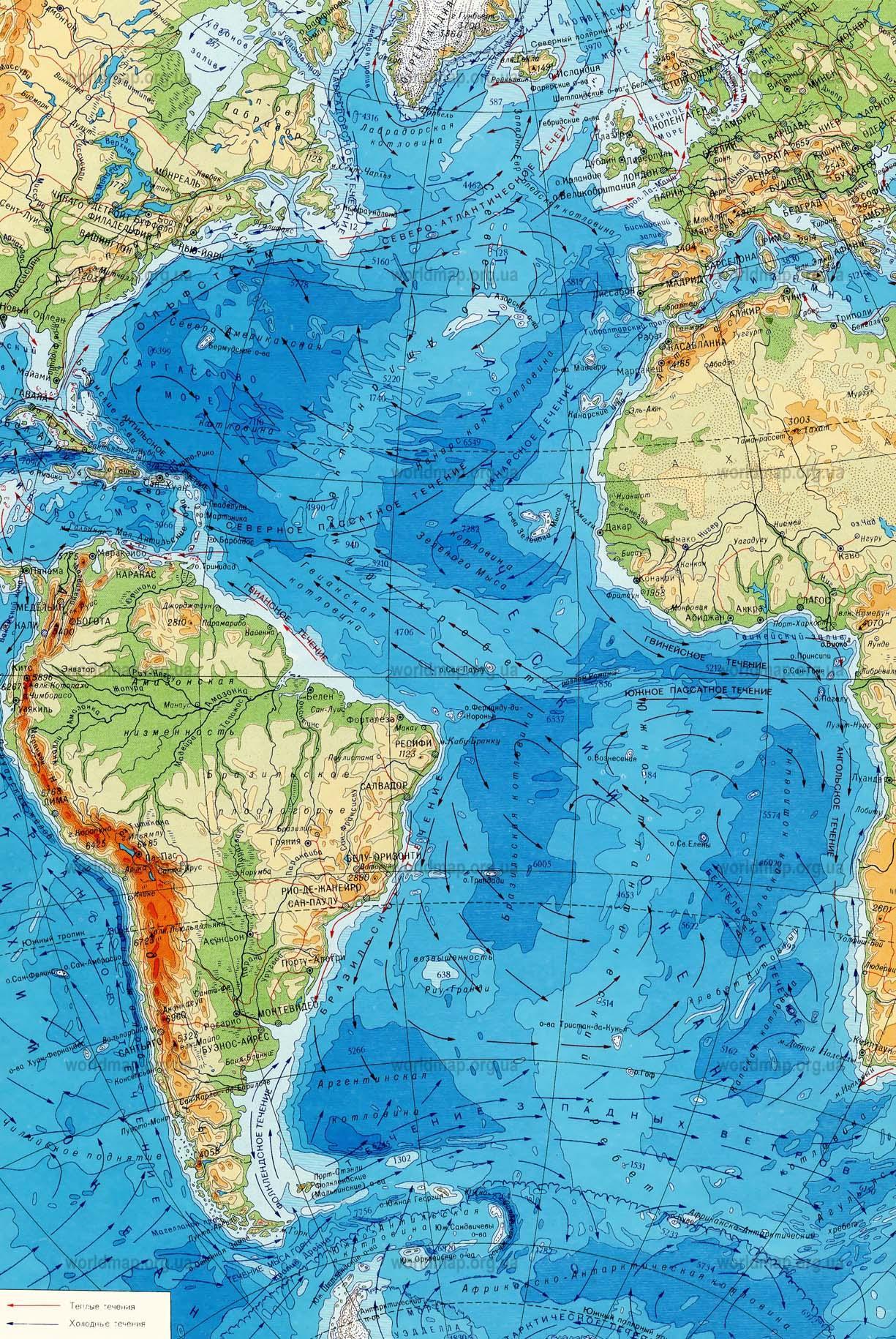 Атлантический океан находится в северном, южном, западном и восточном полушариях.Находится между Северной и Южной Америкой на западе, Евразией и Африкой на востоке и Антарктидой на юге.