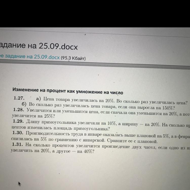 1.27. а) Цена товара увеличилась на 20%. Во сколько раз увеличилась цена?