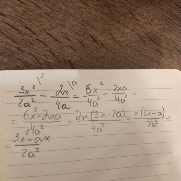 помогите решить пример ( дан по теме сложение и вычитание дробей с разными знаменателями 8 класс) 3х^2/2а^2-2х/4а