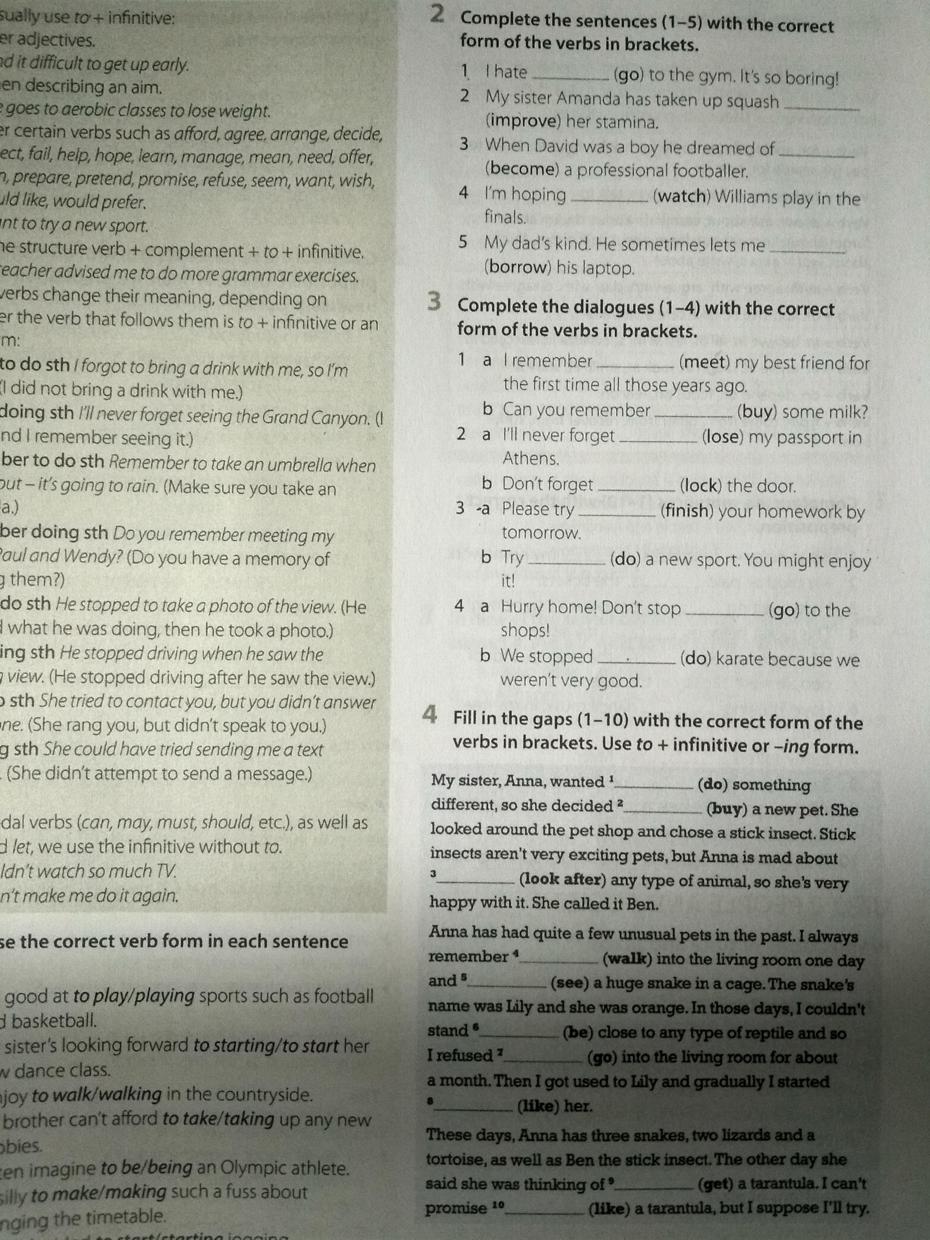 ex.4: 1- to do, 2- to buy, 3-looking after, 4-walking, 5-seeing, 6-being, 7- going, 8-to like, 9- getting, 10- to like.