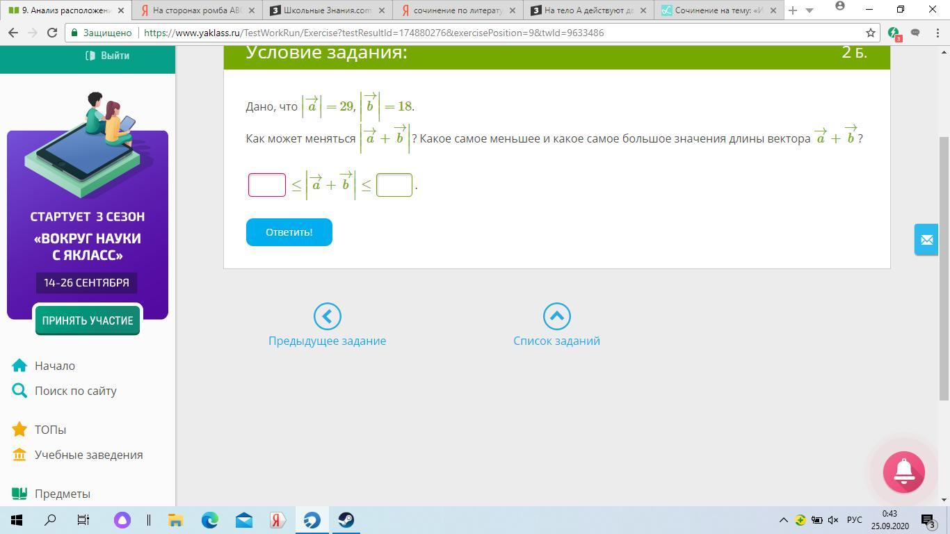 * Теперь просто из конца вектора A берем начало вектора В. Только теперь вектора противоположно направлены. И угол между ними 0°