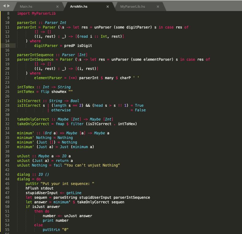 - let answer = minimum' $ takeOnlyCorrect sequen
