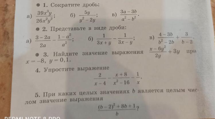 1. а) Берем по 13 и сокращаем 39 и 26, получаем 3 и 2 соответственно. При сокращение степеней они вычитаются, таким образом сокращаем x и y.
