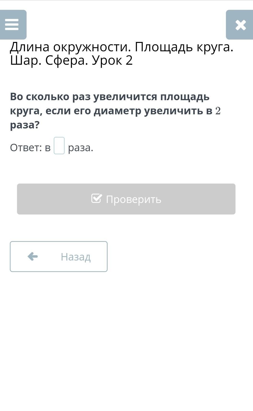 Во сколько раз увеличится площадь круга если его деаметр увеличить в 2 раза.