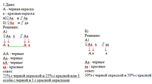 1. Ген чёрной окраски тела крупного рогатого скота доминирует над геном красной окраски. Какое потомство можно ожидать от скрещивания: