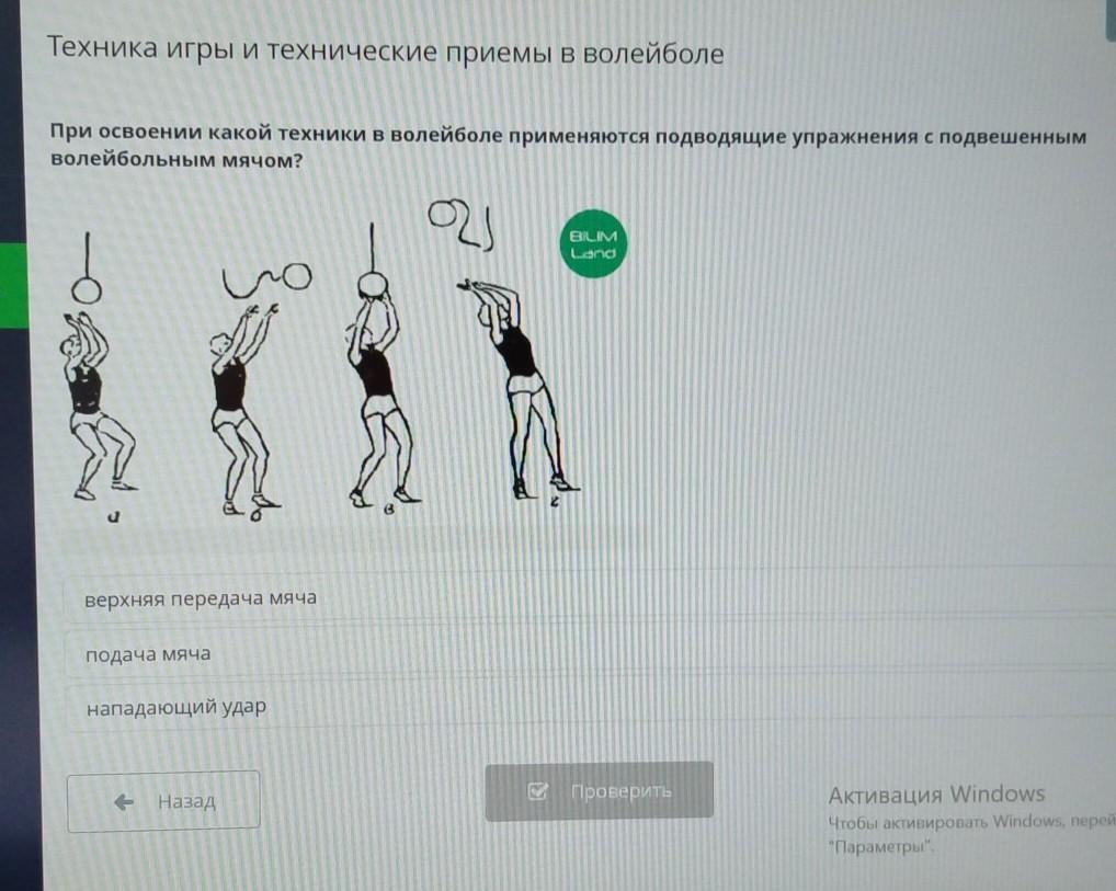 При освоении какой техники в волейболе применяются подводящие упражнения с подвешенными волейбольным мячом?