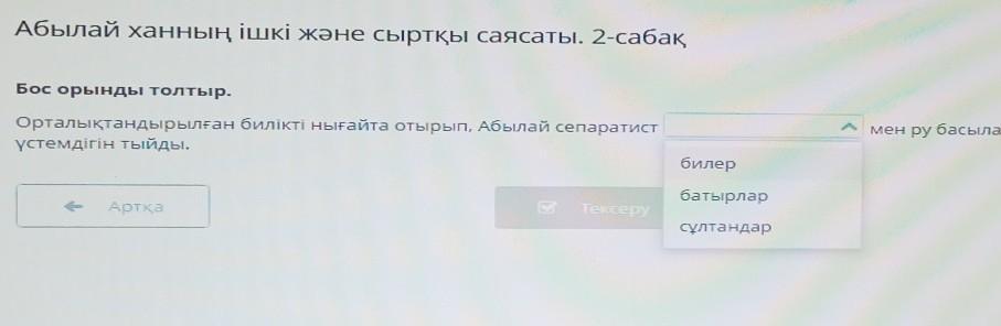 Орталықтандырылған билікті нығайта отырып, Абылай сепаратист ...... мен ру басылардың үстемдігін тый ды.