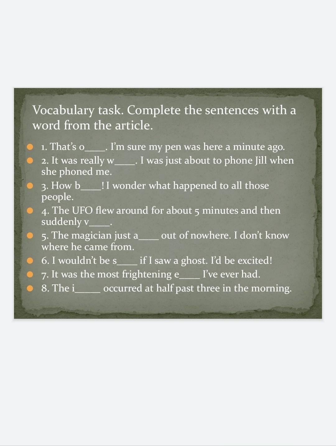 vocabulary task.complete the sentences with a word from the article. Пожалуйста помогите