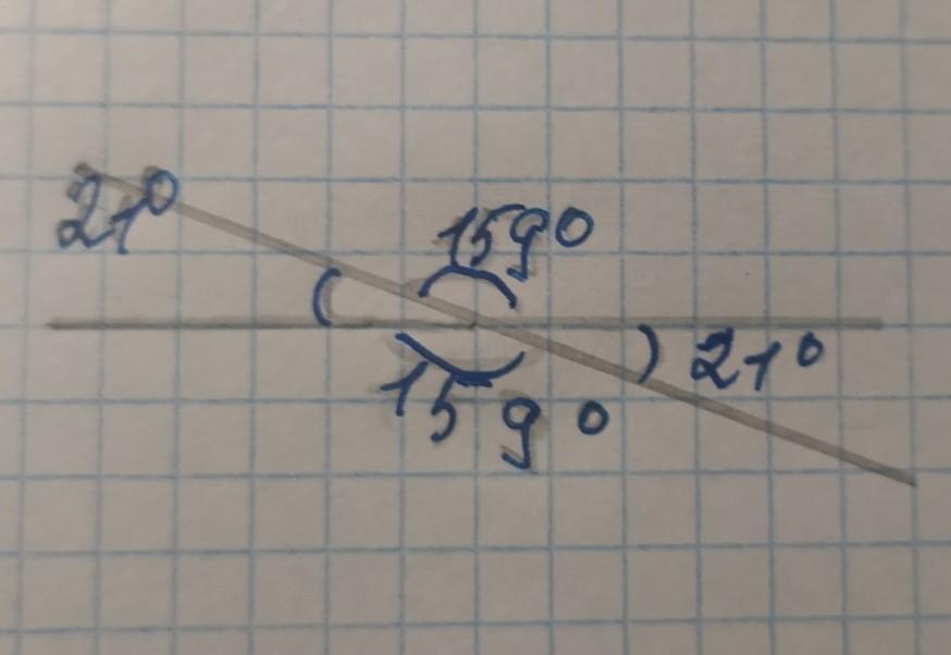 получится 2 угла=21° и ещё 2 угла=159°
