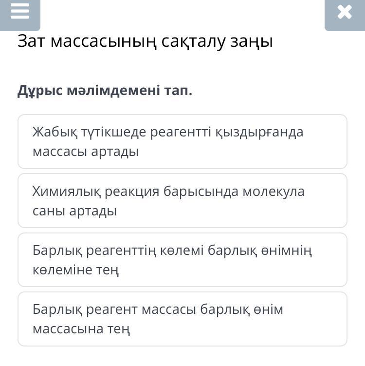 Барлық реагенттің көлемі барлық өнімнің көлеміне тең