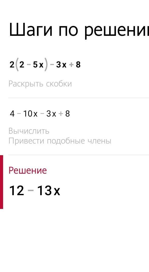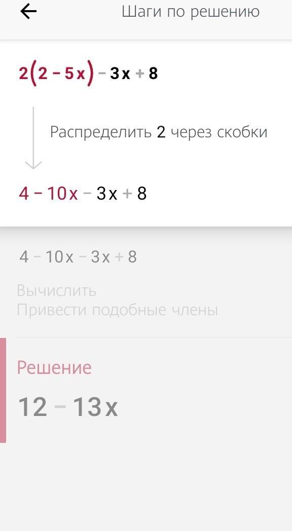 Упростить выражения 2(2-5х)-3х+8 алгебра 7 класс
