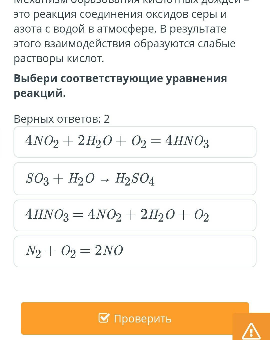 При взаимодействии кислотных оксидов с водой образуются кислоты