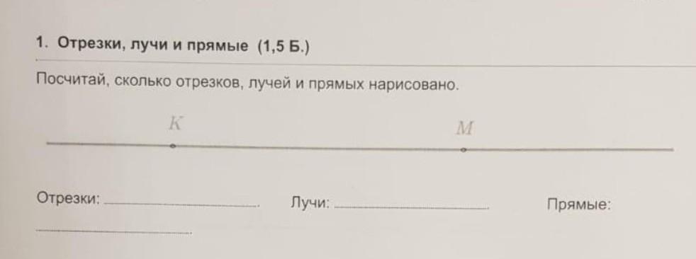Ответ:2 луча, 1 отрезок, 1 прямая