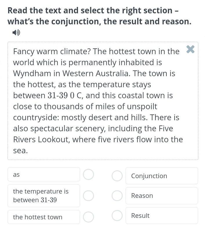 Read the text and select the right section – what’s the conjunction, the result and reason.