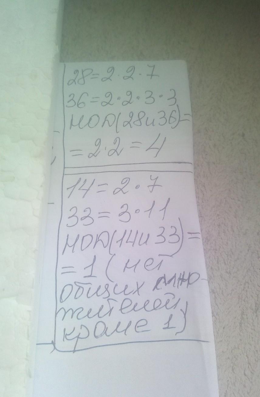 Найдите наибольший общий делительчисел а) 28 и 36 б) 14 и 33