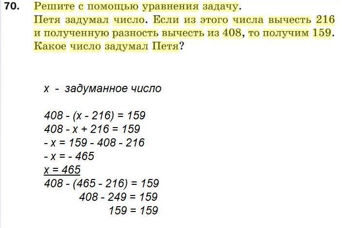 Даня задумал цыфру. Если от этого числа отнять 216 и полученую разницу отнять от 408 тогда получим 159. Какую цыфру задумал Даня?
