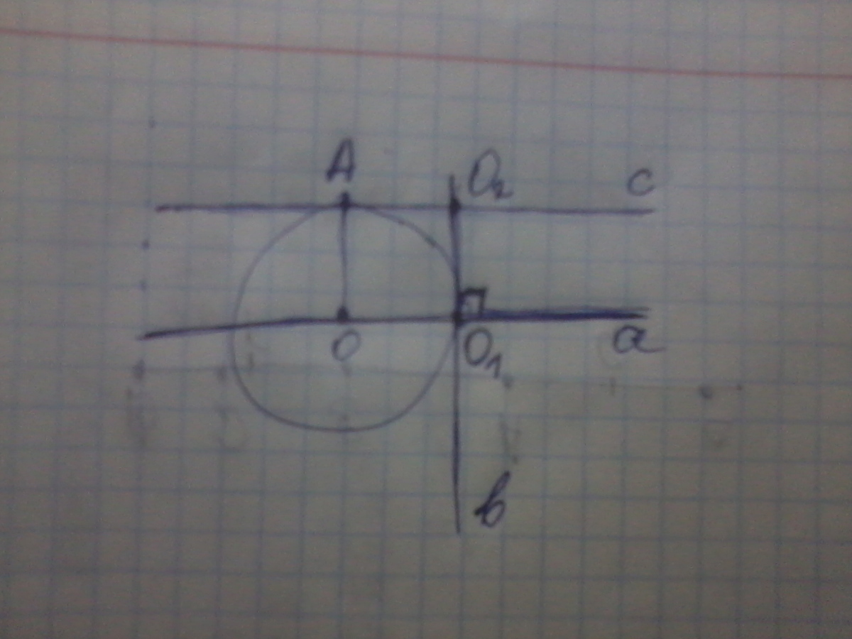 сначала проводим прямую "а" через центр, затем от точки О1 откладываем перпендикуляр к прямой "а", назовем ее"в". на"в" откладываем точку О2. О1О2=АО
