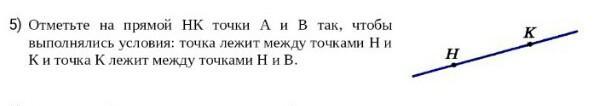 отметьте на прямой НК точки А и В так,чтобы выполнялись условия: точка А лежит между точками Н и К и точка К лежит между точками Н и В
