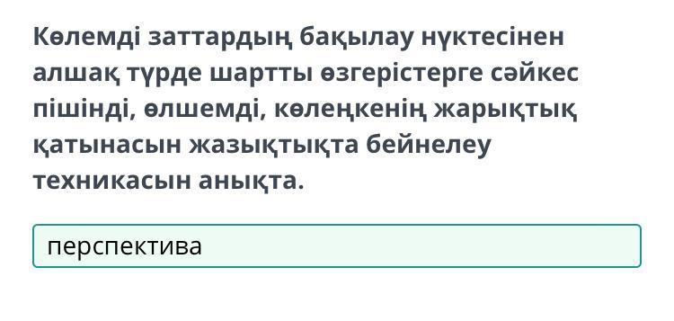 Көлемді заттардың бақылау нүктесінен алшақ түрде шартты өзгерістерге сәйкес пішінді өлшемді көлеңкенің жарықтық қатынасын жазықтарға бейнелеу техникасын анықта композиция перспектива жанр техника помогите пж