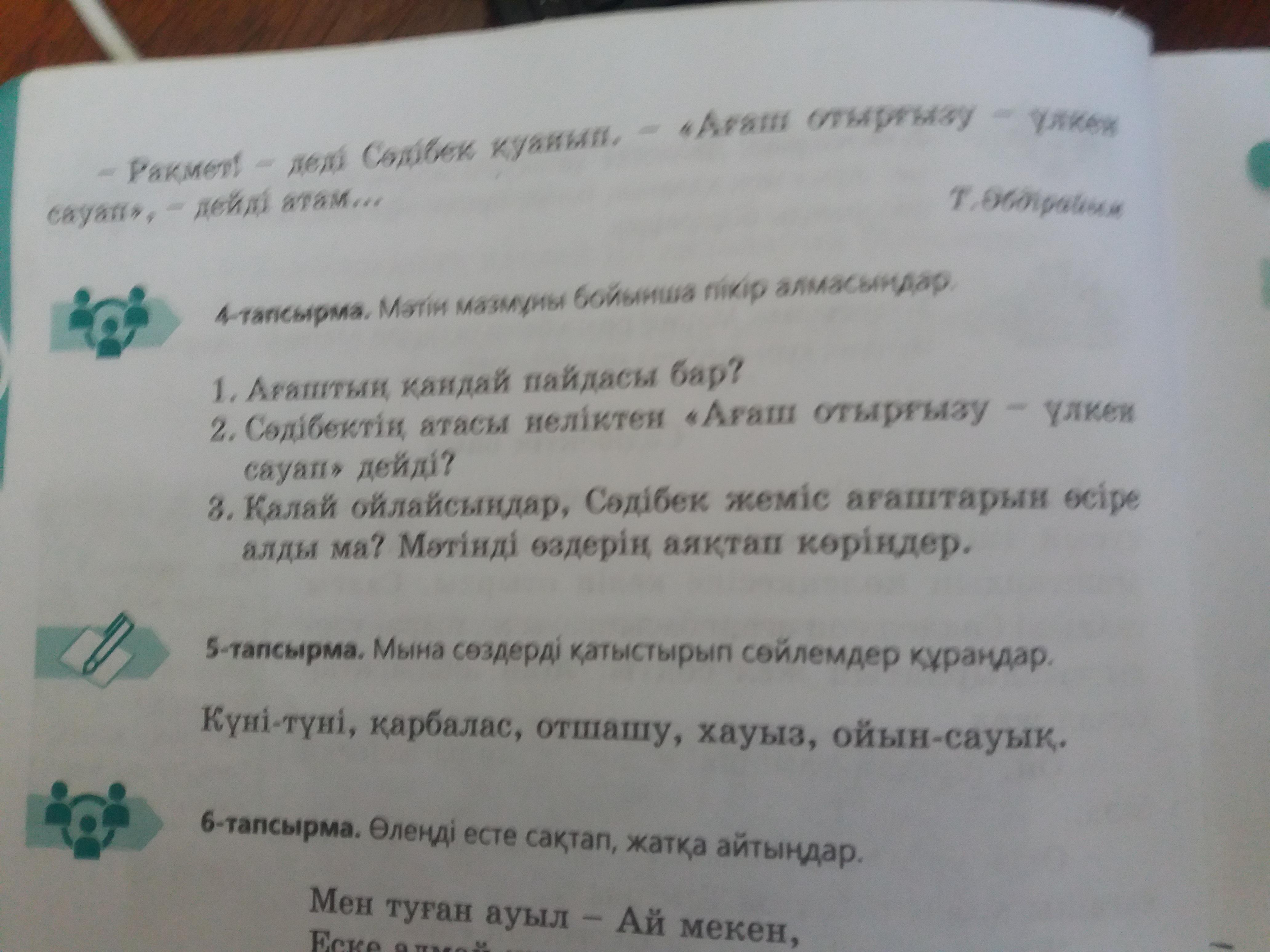 Ответ:Ағаш бізге таза ауа береді өзіне лас ауа ны сіңіріп бізге таза ауасын береді