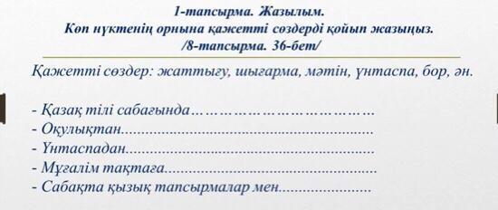 1)Қазақ тілі сабағында қызықты мәтін оқыдық.