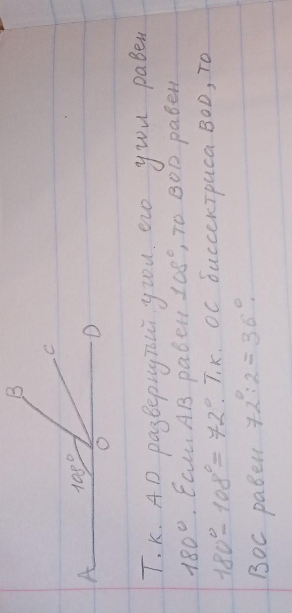 ∠ВОС= 36°