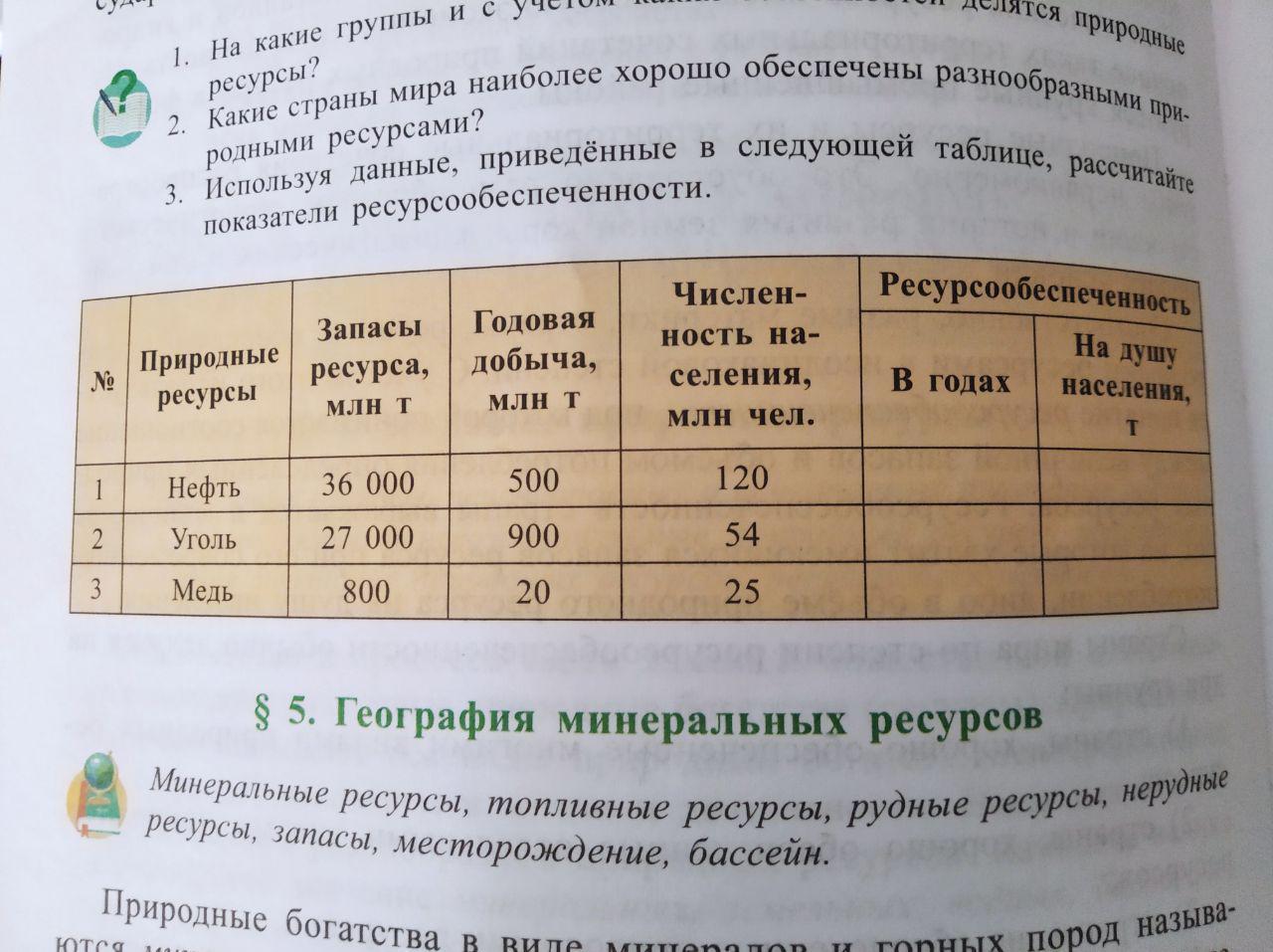 Используя данные приведённые в следующей таблице рассчитайте показатели ресурсообеспеченности
