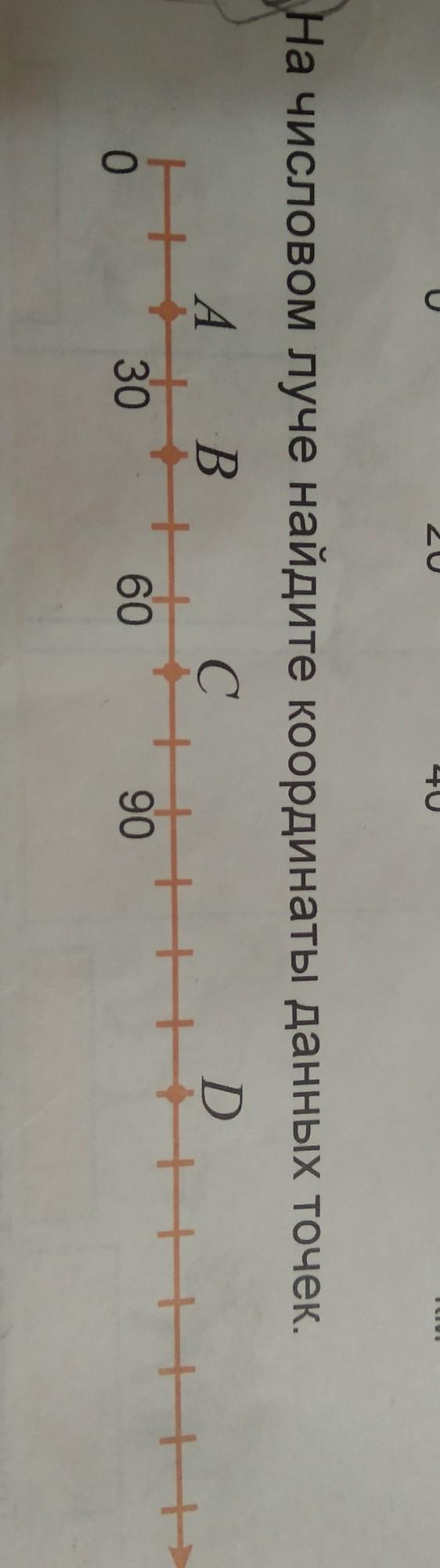 точка A на 2 делении 20, B - 40, C - 70 и D - 130.